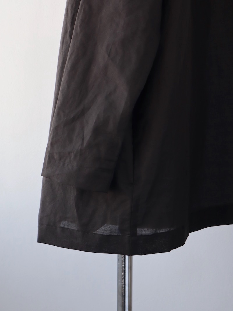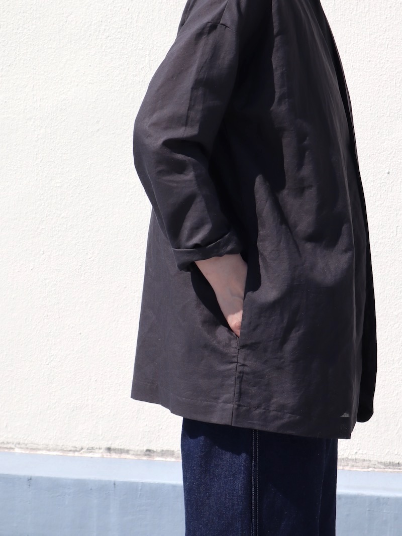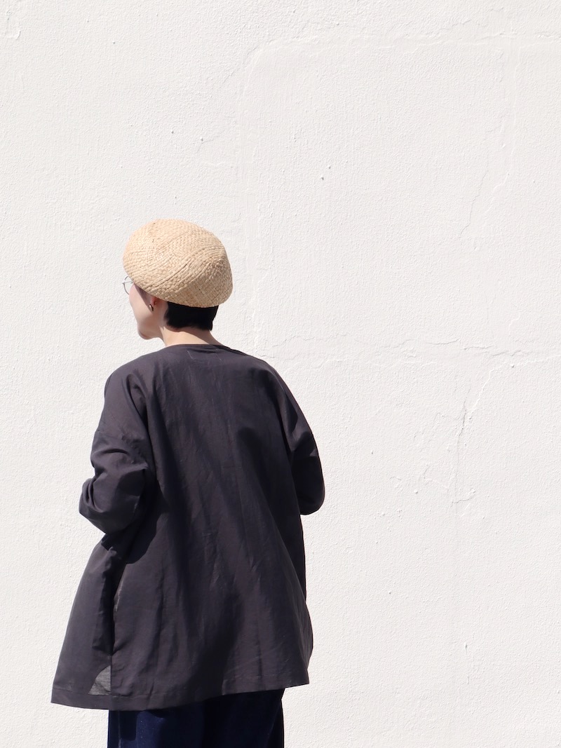 コットンのキリッとした質感と、ラミー特有のサラッとした触感が同居した、薄手のローン生地。ほのかに透け感のある風通りの良い生地感で、汗ばむ季節でも爽やかに着られます。「どんだけ〜〜」と思わずIKKOしたくなる軽さも魅力です。