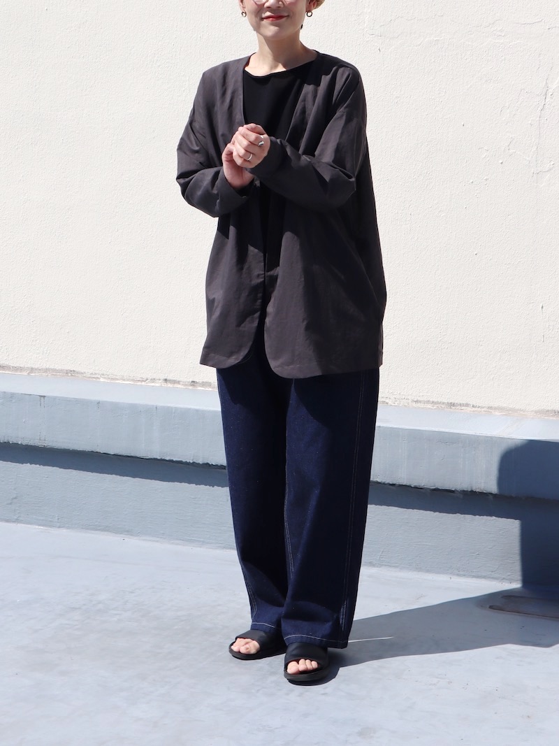 MUYA(ムヤ)のラウンドカーディガンは、そんな存在です。品名にカーディガンとありますが、ジャケットのようにクリーンな印象も備わっています。