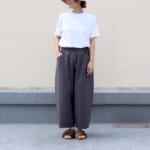 衣類についての考え、と題されたMUYAのウェブサイトに、“服づくりにおいて大切にしていることは、「何にも属さない水のようなもの。着る人のスタイルで変化し姿や表情を変えるもの」をコンセプトに”と記されています。