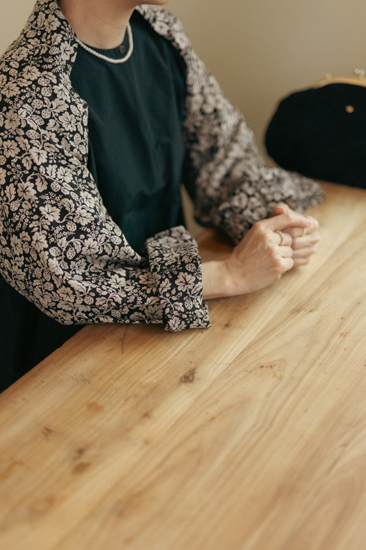 選んだのは、「R&D.M.Co-」の定番として親しまれているWILD BERRY柄。長く愛されているこの柄が私自身も大好きで、別注で作らせてもらうならこの柄で、との思いがありました。