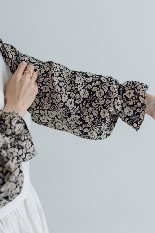 この別注ストールボレロは受注生産で、生地の生産から丁寧な縫製まで、時間をかけて作ってくださるので、お届けまで長めの時間をいただきます(8月頃の予定です)。ご予約期間は4月24日(金)~4月26日(日)23:59 の3日間ですので、ご注意くださいね。