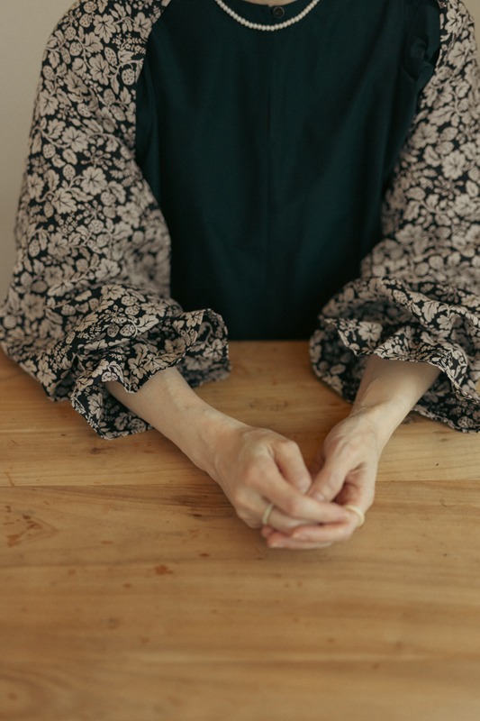 この柄は、身につけたときの気持ちまでやわらげてくれるような気がします。そして、リネンの素朴な風合いと合わさることで、気負わずに使える一枚になりました。