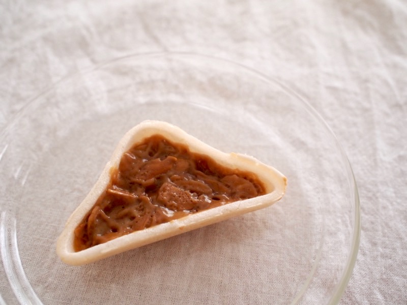 また、最中種に流し込んだキャラメル生地は、乳製品類が使われていないことが信じられないほどにコクがあり、和三盆の角のないまぁるい甘さと合わさり、奥行きのある味わいを生み出しています。濃いめに淹れた煎茶や珈琲との相性も抜群です。