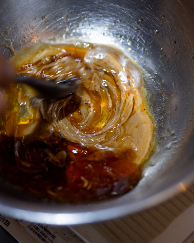 ⑤ボウルに残ったタレに、白練りごまを加え混ぜる。