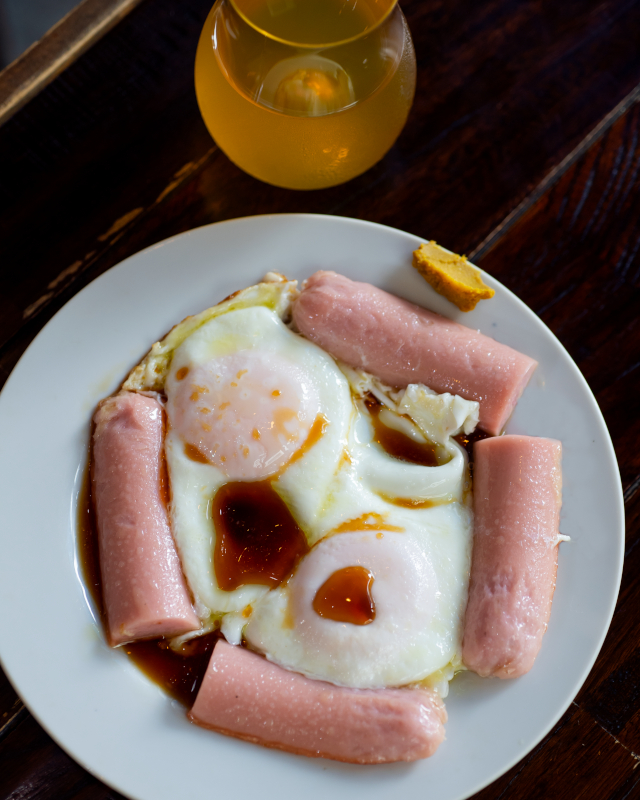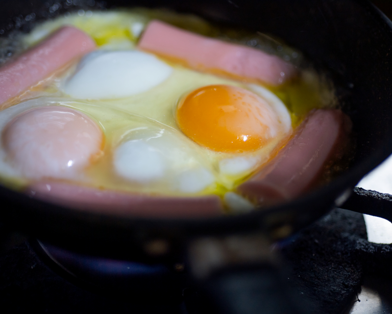 ラストは、「ブンカ堂」の大人気定番メニュー「魚肉ソーセージのハムエッグ」が登場! ハムエッグというと朝食のイメージがありますが……