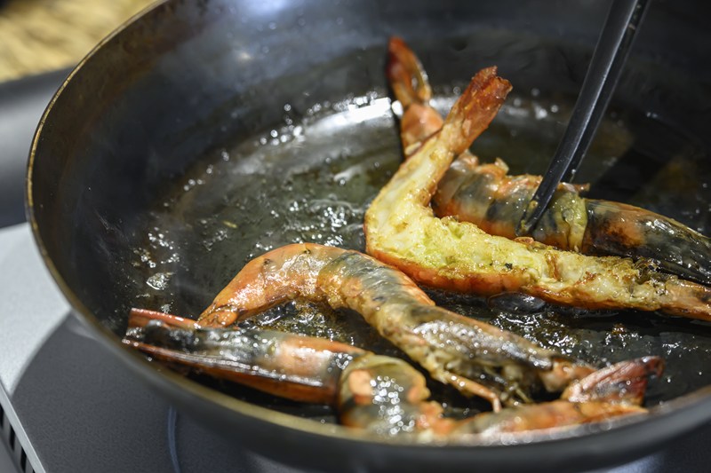 「フライパンに残っている海老の焦げは“旨み調味料”の役割を果たしてくれるので、海老は表面が軽く焦げるまで炒め、その焦げを玉ねぎに和える要領で炒めるとより深みのある味わいに仕上がります」