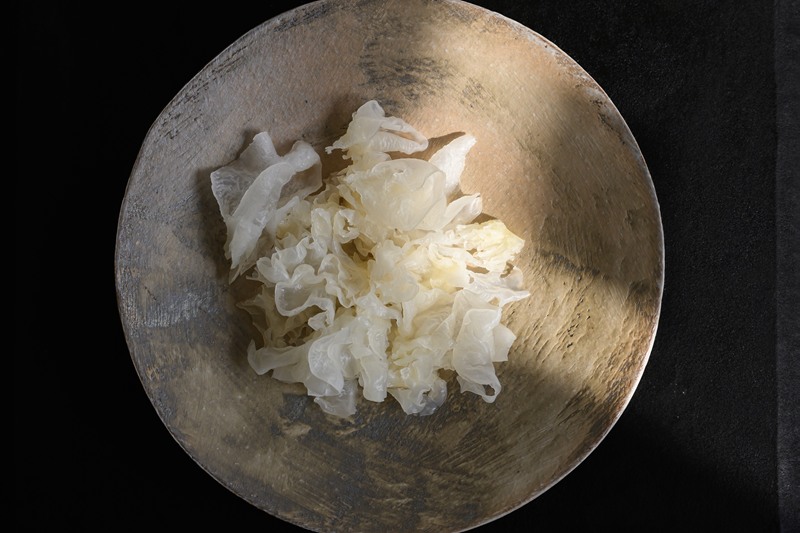 薬膳の世界では体に必要なうるおいを生み出す食材として有名な白キクラゲは、植物性コラーゲンを豊富に含み、化粧品の原料としても良く使われるそう。