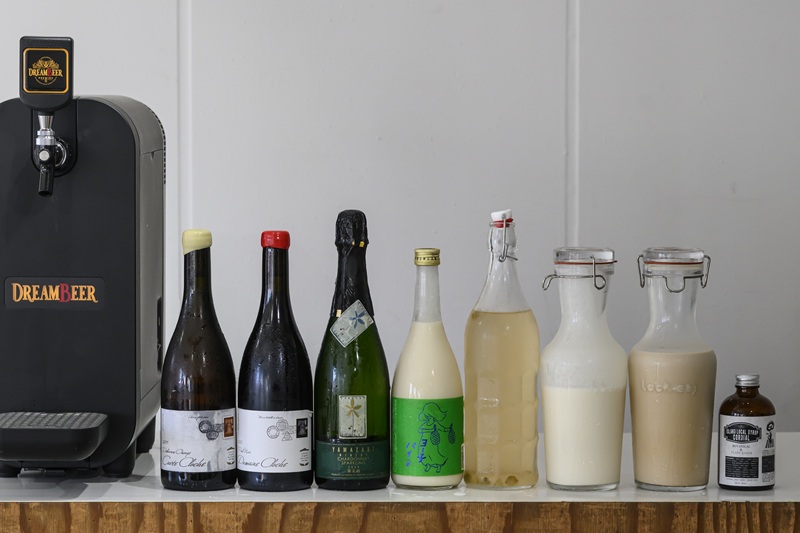 この料理教室では、毎回ソムリエの方がセレクトしたお酒が並びます。今回も日本酒をはじめ料理に合うちょっぴりスパイシーなワイン各種、インド料理といえばラッシーということでお酒版ラッシーのようなクラフト酒などがズラリ。もちろんノンアルコールドリンクも揃っていて、沖縄ハーブのシロップを使ったチャイや、ライチの香りを付けてラッシー風にアレンジした甘酒と、説明を聞いているだけで好奇心をそそられるラインナップでした。