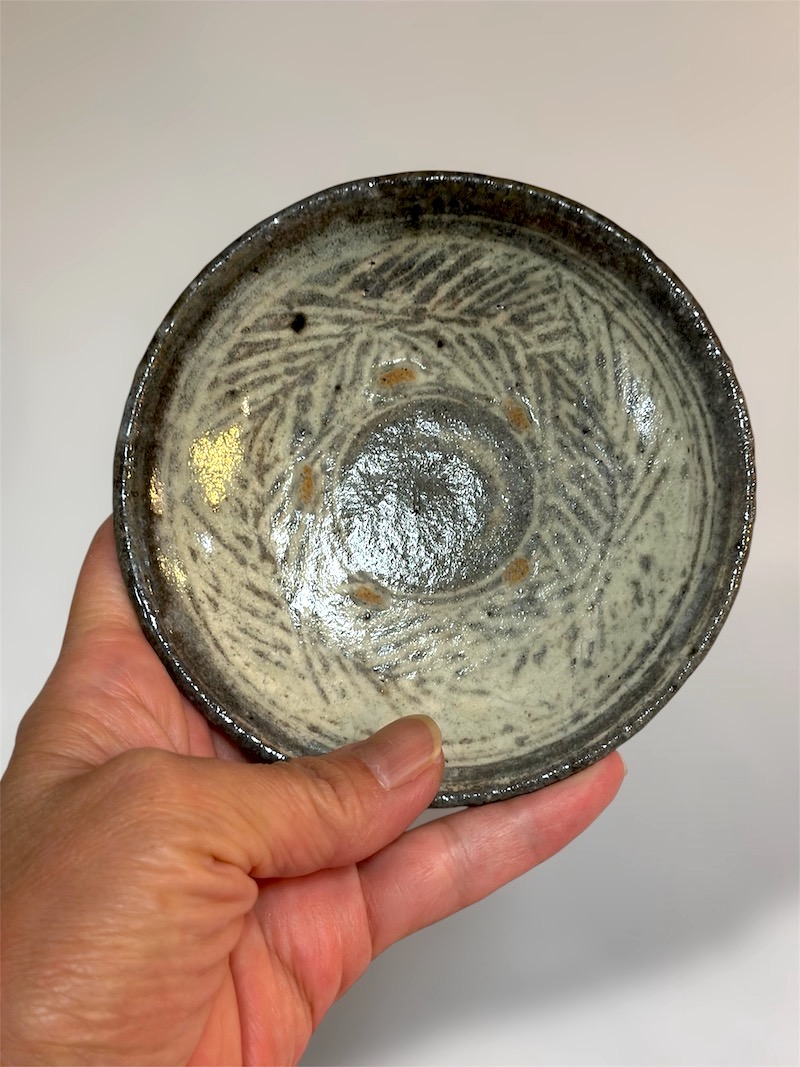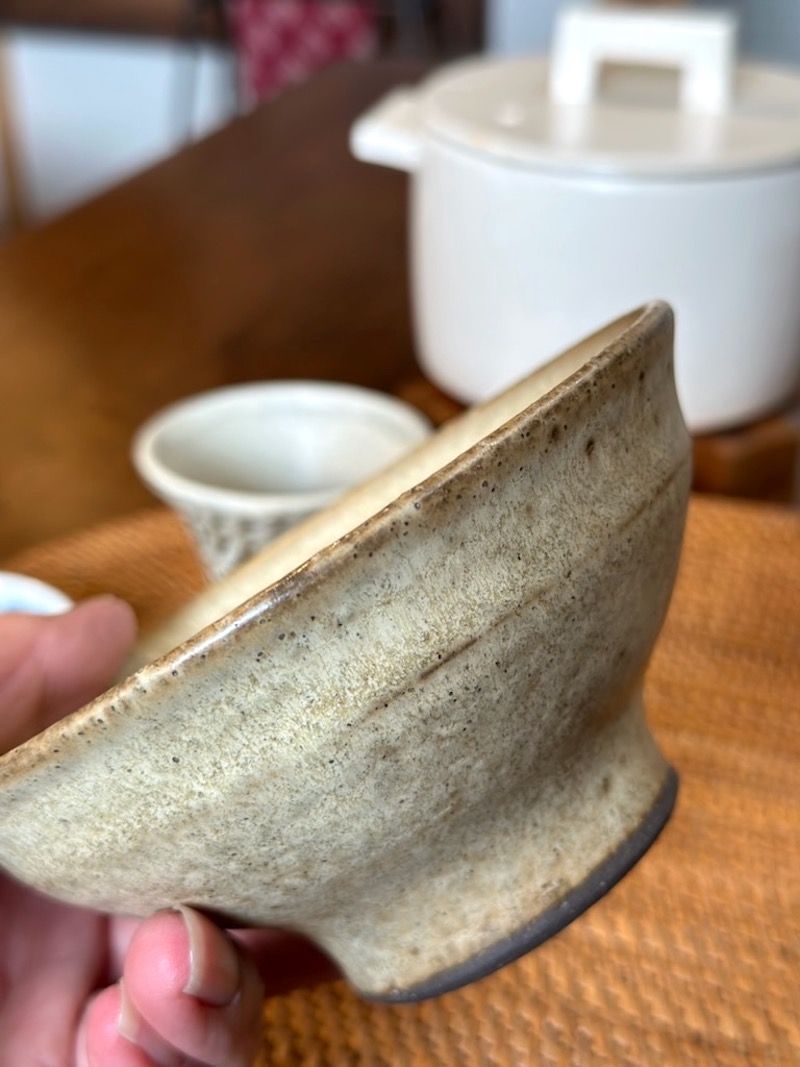 飯碗もフじイさんのうつわで(他の作品もそうなのですが)、非常に手?指に収まりが良い。飯碗の腰部分が少しスリムになっていて、人差し指・中指がそこにぴたっと収まってしまう。また肌がなめらかでございます。