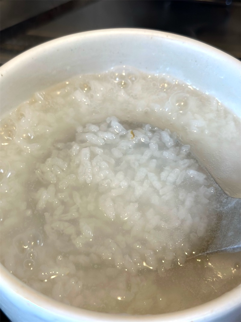 さて、今朝はどうしようかなと考えながら某雑誌眺めていたら、ささみ出汁が目につきました。丁度ささみもあるし、お休みだし・・・とのことで、ひと手間かけてささみの出汁でおかゆを作りました。