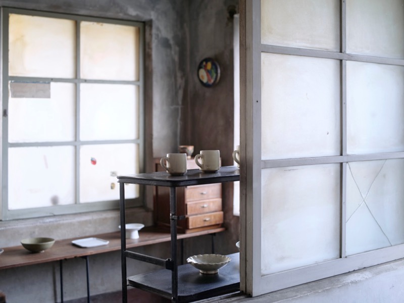 この建物はかつて建築会社の事務所でした。窓やガラスなどの建具や小道具は当時のまま、壁も塗り直しせず、できるだけ当時の雰囲気を残しています。