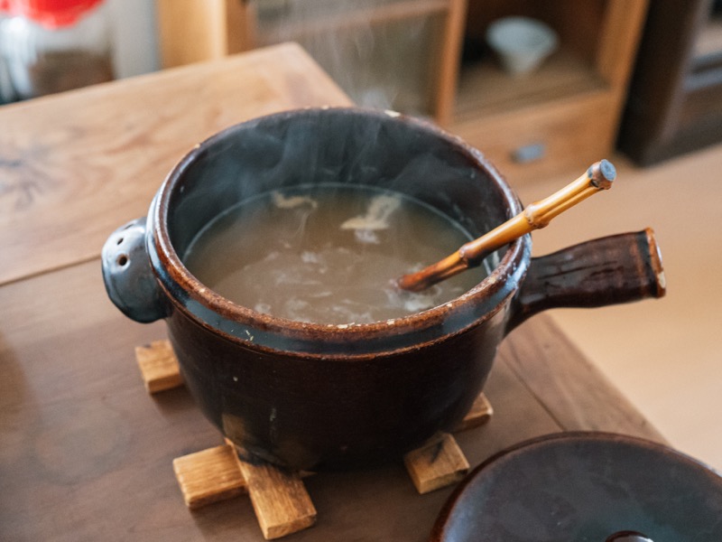 土鍋は、三重県・伊賀の窯元、土楽の片手鍋。煮込み料理や炒めてからスープにする料理にとてもよくて大活躍。そのまま食卓に出せるのもうれしいですね。