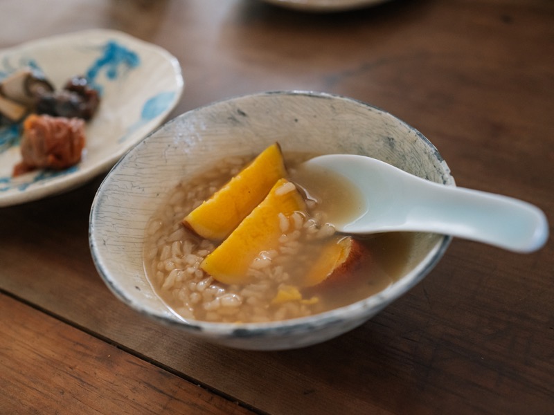 寒い朝は、茶粥であたたまる。