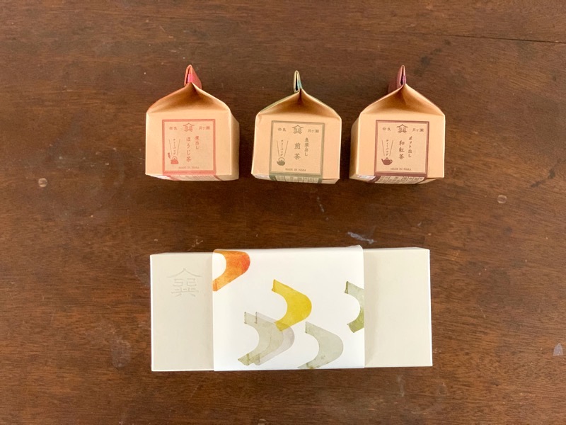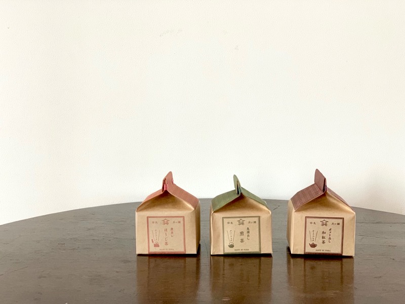 まず目を引くのが、そのパッケージ。三角屋根の小さいおうちの中にはティーパックが8個も詰まっています。ほうじ茶、煎茶、和紅茶・・・。どれも本当に美味しい。3種類を詰め合わせた箱入りギフトも、お茶好きの方への贈り物にお勧めですよ。