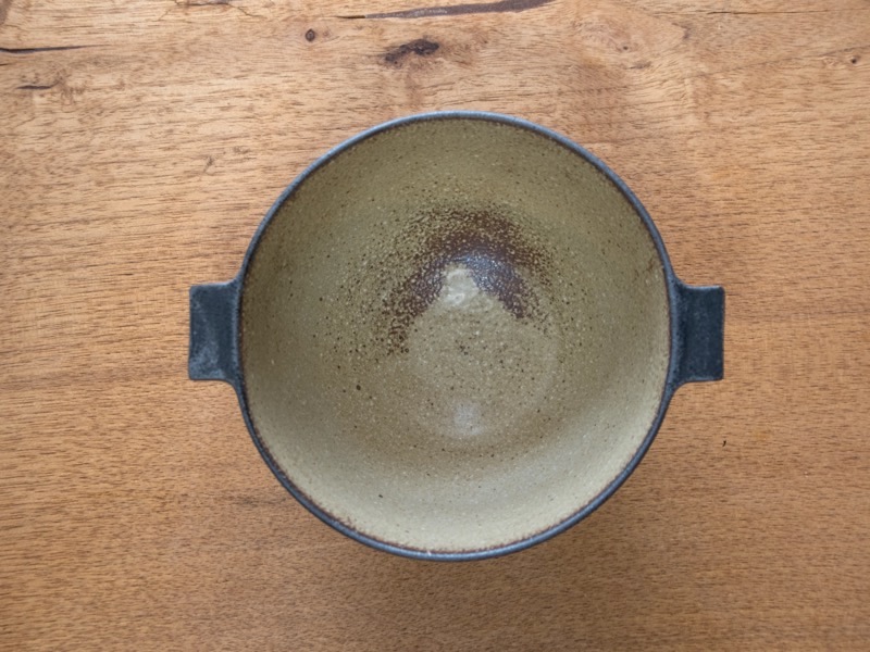 使った器は函館の窯元「mego」の「スープボウル moon night」。ワンポイントの持ち手の耳が器のアクセントにもなり実用性も兼ね備えています。