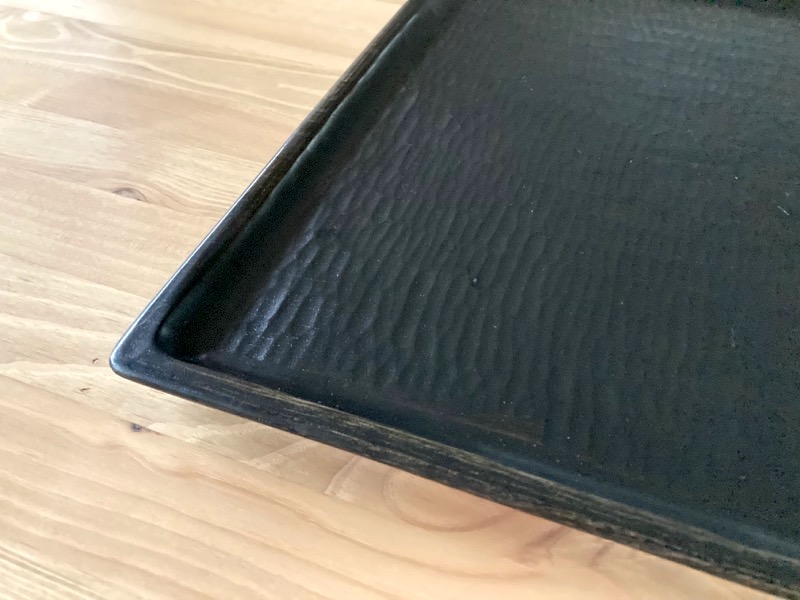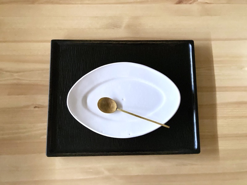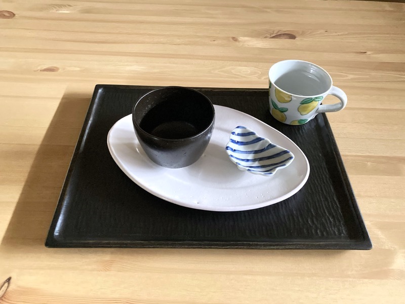 漆の角盆は、福島で活動されている藤原啓祐さんによるもの。あたたかみのあるカンナ跡や、大型のお皿でも十分に載せられるゆったりとしたサイズ感が使いやすく毎日活躍してくれています。