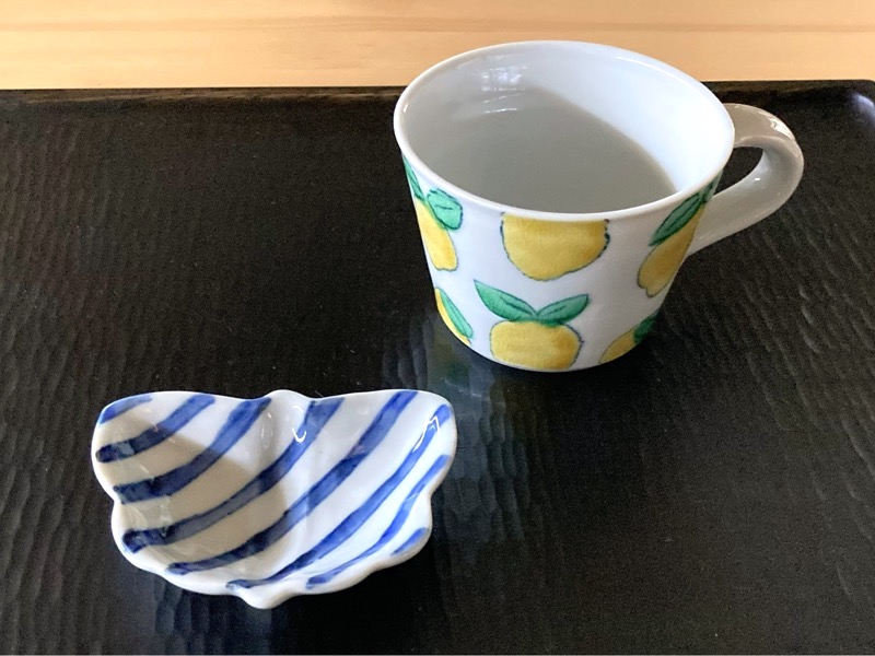 カップは村田菜穂美さんによるToéオリジナルのレモン柄。シックなカラーが多い今回のうつわラインナップの中、この明るいレモン柄が全体コーディネートのなかで抜け感を出してくれます。店頭でもお子様向けギフトというより、大人の方がご自宅用でお求めになられているケースが多く、年齢問わず使え明るい気持ちにしてくれるアイテムのひとつです。