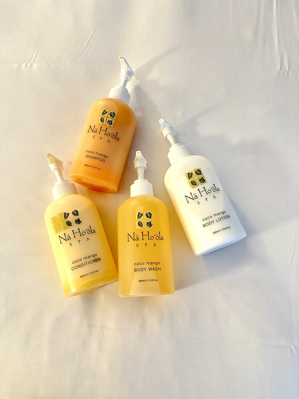 細かなことですが、アメニティがホテル内にあるスパのオリジナルのものというのもポイント高し。ボディウォッシュもシャンプーもコンディショナーも、ボディローションまでも、coco mangoのあま〜いトロピカルな香り。これが、ハワイでのバスタイムにものすごく合うんです。日本で檜の香りのお風呂に浸かるのと同じくらい、あぁ〜気持ちいい〜とリラックスした時間を過ごしました。こちらはスパでも販売しているので、自分へのお土産にも。