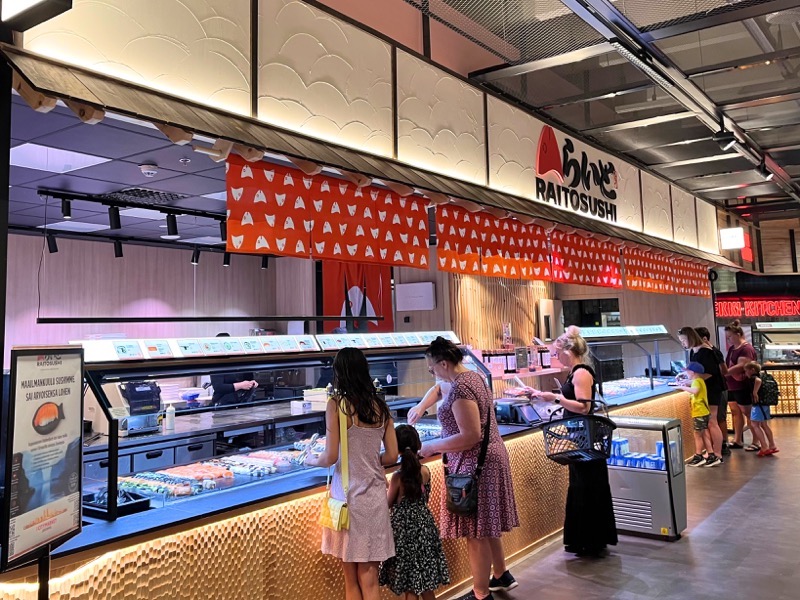 その中でも人気なのが日本米を使用したビュッフェ形式のお寿司コーナーです。SUSHIのお店はフィンランドに多いですが、シャリまで美味しいお店はあまりないので、このスーパーのお寿司の美味しさにはびっくりでした。お店の前の通りは、住所を見ていただくと驚きますが「寿司通り」と名付けられています。