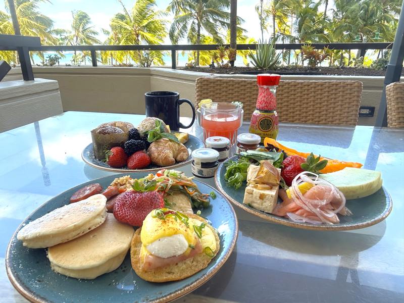 ハイアットリージェンシー ワイキキの3階にあるレストラン「ショア」からは、朝ごはんを食べながら何度デューク・カハナモク像を眺めたことか。ここへは、本当に何十年も通わせていただいておりまして、朝、夕問わず、何かとお世話になってきました。今回の宿泊でも、朝ごはんをガッツリといただいてきたんですが、おいしすぎて、もうランチはいらないってくらい、食べました。