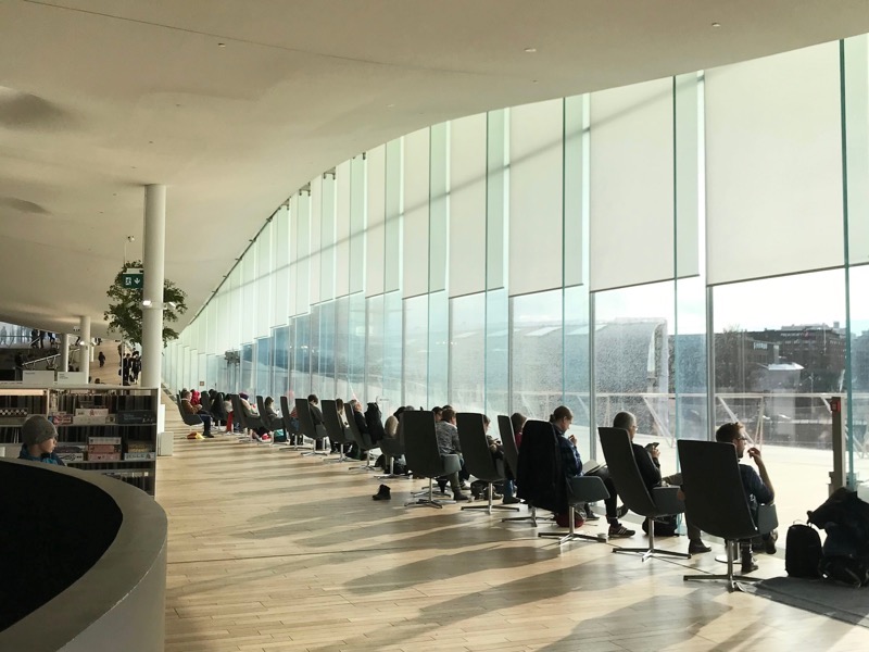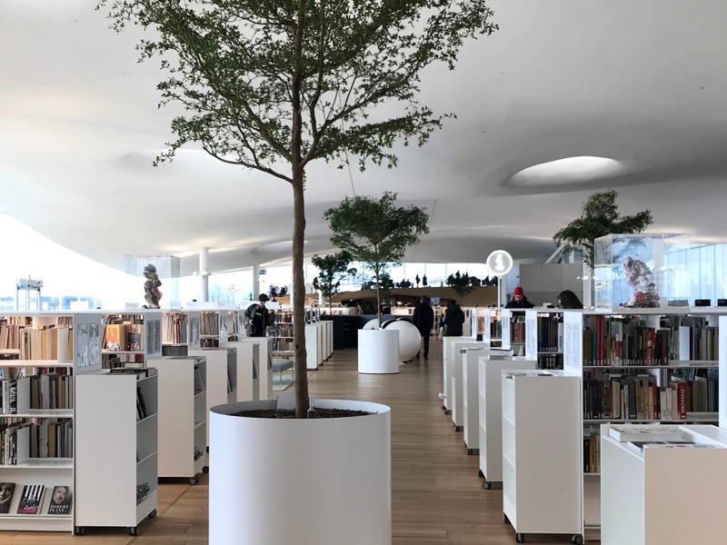 ヘルシンキ中央駅のすぐ近くにある2018年に開館したヘルシンキ中央図書館「Oodi(オーディ)」は、まずユニークな形状の建築に圧倒されます。中に入ると、人々が読書をしたり友人と談笑したり、ものづくりを楽しんだりと思い思いに過ごしている様子にこんな理想の図書館があるのかと感動します。2019年には、国際図書館連盟が発表する"Public Library of the yearにおいて世界一の公共図書館にも選ばれました。