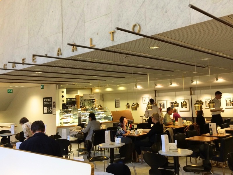 次に、ヘルシンキで一番有名な本屋さんといえば、1969年にオープンしたアルヴァ・アアルト設計のアカデミア書店です。天窓から自然光が入り、吹き抜けの空間が清々しいです。書店の2階にはアート系の本も充実しており、映画『かもめ食堂』の舞台となったCafe Aaltoで寛ぐことができます。フィンランドを代表する家具ブランドartekの照明ゴールデンベルがとても印象的です。
