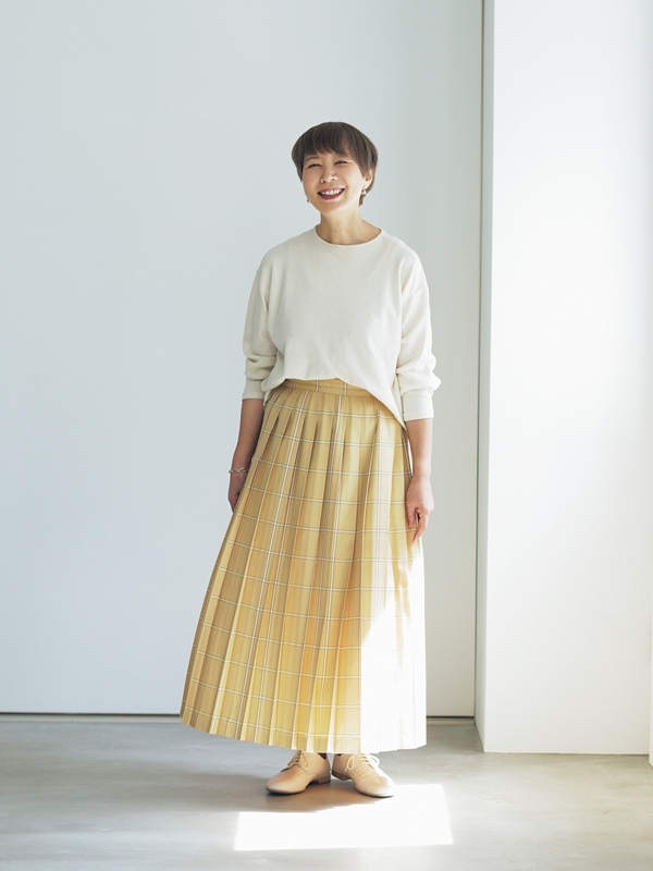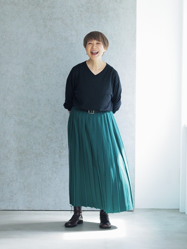 エレガントな揺らぎをもたらすウールのプリーツスカートは金子さん注目のアイテム。