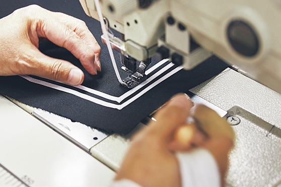 縫製工場で働くのは25名。70代の大ベテランも。セーラー服の襟の白線を縫う職人さんの機敏さと仕上がりの美しさに感動!