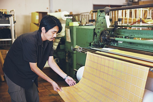 「1960年に当時の西ドイツから導入したプリーツマシンを使って、当時は流行の先端だったプリーツスカートを作り始めました。製造した数は100万着を超えます」と商品企画や営業を担当する吉村宣孝さん。工場で見せていただいたプリーツマシンの上に乗っていたのはコラボスカートに使われる生地。「カラカラカラカラ〜」と音を立ててヒダがつけられていく様子は何だか健気に思えて、ずっと見入ってしまいます。熱で固定し、冷ましたら縫製工場へ。