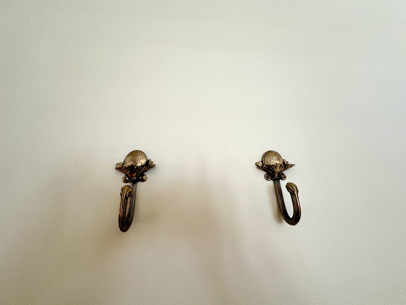 創業年の「1901」が刻まれた部屋のフック。一つ一つに歴史を感じます。