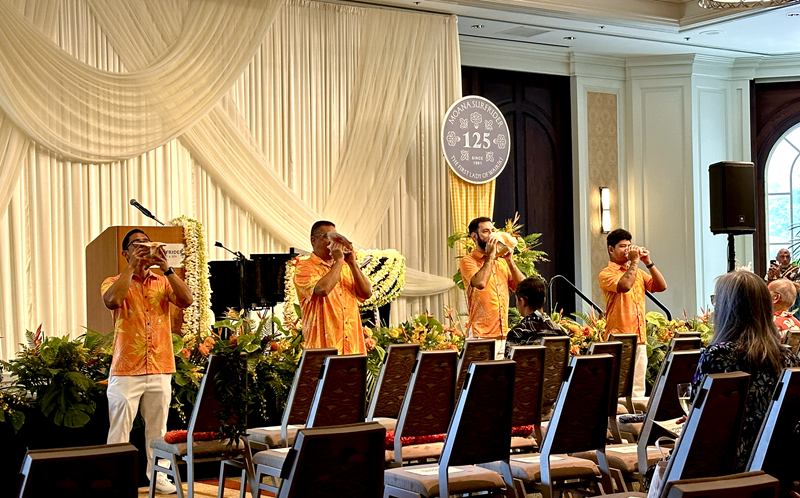 さて、125周年の式典が行われた3月11日はお昼前からボールルームで、支配人及び関係者の皆さんのハートフルな挨拶とロイヤルハワイアンバンドによる演奏などが賑々しく執り行われました。