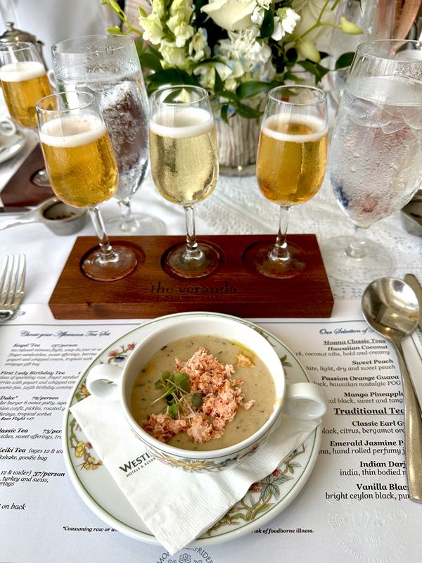 式典終了後はホテル内のレストラン「ザ・ベランダ」に移動し、華やかなスイーツやサンドイッチ、スコーンなどが盛り合わせられたアフタヌーンティーをシャンパンとともに楽しみました。