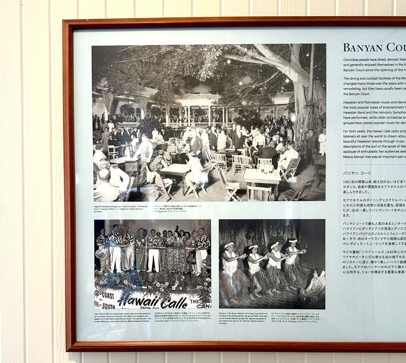 会場では、1935年から約40年間にわたり、このホテルの中庭から全米はもちろん、世界に向けて配信されていたラジオ番組「ハワイ・コールズ」をイメージした生バンド演奏も。これが本当に良かった! 古き良きハワイを思い、私は好きな曲が演奏されるたびにいちいち感動しておりました。
