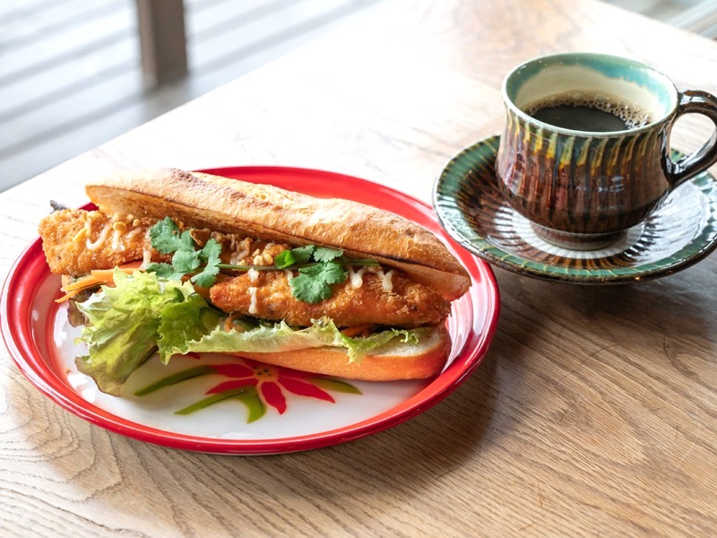 年に3〜4回、タイ、ラオス、ベトナム、韓国、台湾、インドにネパールなど、アジア各地で買い付けの旅を続け、現地の食にも触れてきた森原さんが、アジア食堂を開かれたのも自然な流れかもしれません。食堂では、アジアごはんのプレートセットとバインミー(ベトナムのサンドイッチ)をご用意。アジアの香りや味を感じるフードには、お店近くの自家菜園でとれた野菜を使い、バインミーのバケットにも同じ夢前町産の米粉を使用。サクっと食べやすい食感のバインミーはテイクアウトもOKです。