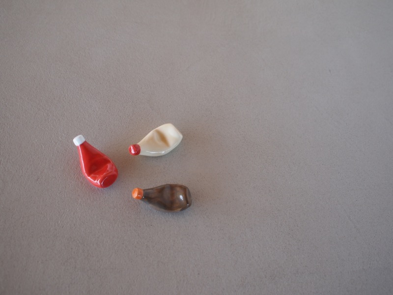 調味料の容器は、中央が少しだけへこんでいて、使いかけのようなリアルさ。