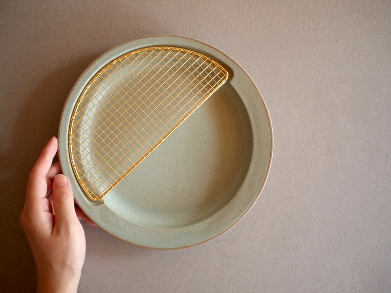 揚げ物をしたときに使う、網。よくあるものは足が付いた、シルバーのものだったりします。揚げては置いて、揚げては置いての作業に使うもの。使い終わったら、お役目終了で洗い物へ。そんなに気に留めることはないかもしれません。でも今日は、そこにもスポットを当てた、器と網が一体になった機能美プレートをご紹介します。