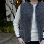 着ると自然に体に馴染み、肩や腕の動きが楽で、長時間身につけていても疲れにくい。さらに、洗濯しても乾きやすく、軽やかで扱いやすいことも、毎日の家事や仕事の中で非常に助かります。こうした着心地の良さは、きみえさんが素材と縫製の細部にまで心を配ってきた結果であり、服としての美しさと使いやすさの両立が、このブランドの大きな特徴です。控えめな印象ながらも、後ろから見たギャザーの入り方などさりげないバランスが可愛らしく、着る人のさりげないおしゃれ心を満たしてくれます。