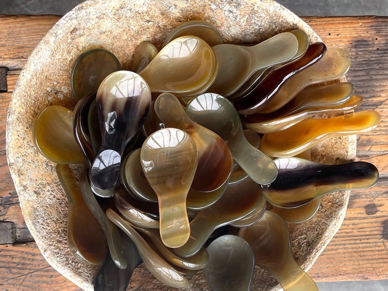 オリジナルデザインのスパチュラは、エステやサロンを営む方々にもご好評いただいています。店舗では、水牛角を使ったカッサなどのセルフケアアイテムもご紹介しています。自然の素材が持つやわらかな手触りを、日々のケアのひとときに取り入れていただけたらうれしいです。