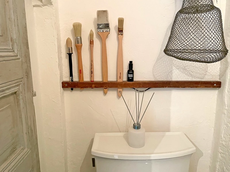 見た目にも美しく、使っていて気分が上がる掃除道具。トイレや洗面所のような小さな空間こそ、こうした“見えても素敵”な道具があると、掃除の手が進みます。いくつかのペイントブラシを持ち帰った今では、すっかり私の日常の相棒です。ペンキを塗るために作られた道具ですが、手洗い場の洗面器やトイレの隅のほこり、窓のサッシや階段の角、テーブルの伱間など、細かい部分を掃除するのにぴったり。美しく使いやすい道具があるだけで、日々の家事も気持ちよくこなせるのです。
