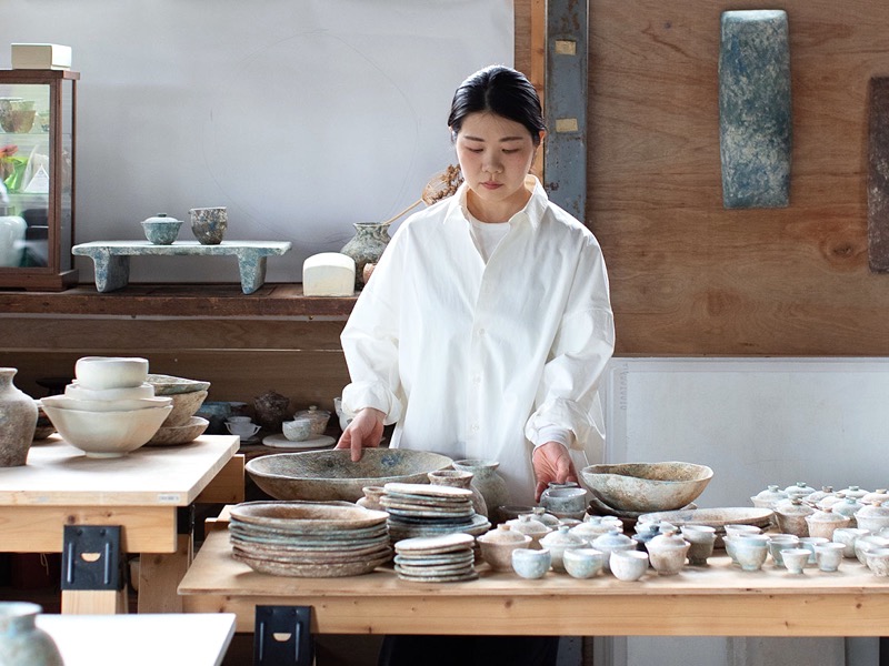 故金さんは1995年岐阜県生まれ。武蔵野美術大学で工芸工業デザインを学び、多治見市陶磁器意匠研究所ラボコースを修了したのち、多治見で創作の日々を積み重ねています。これまで国内外で精力的に作品を発表し、ここ数年は展示の予定が途切れることのないほど注目されている作家でもあります。