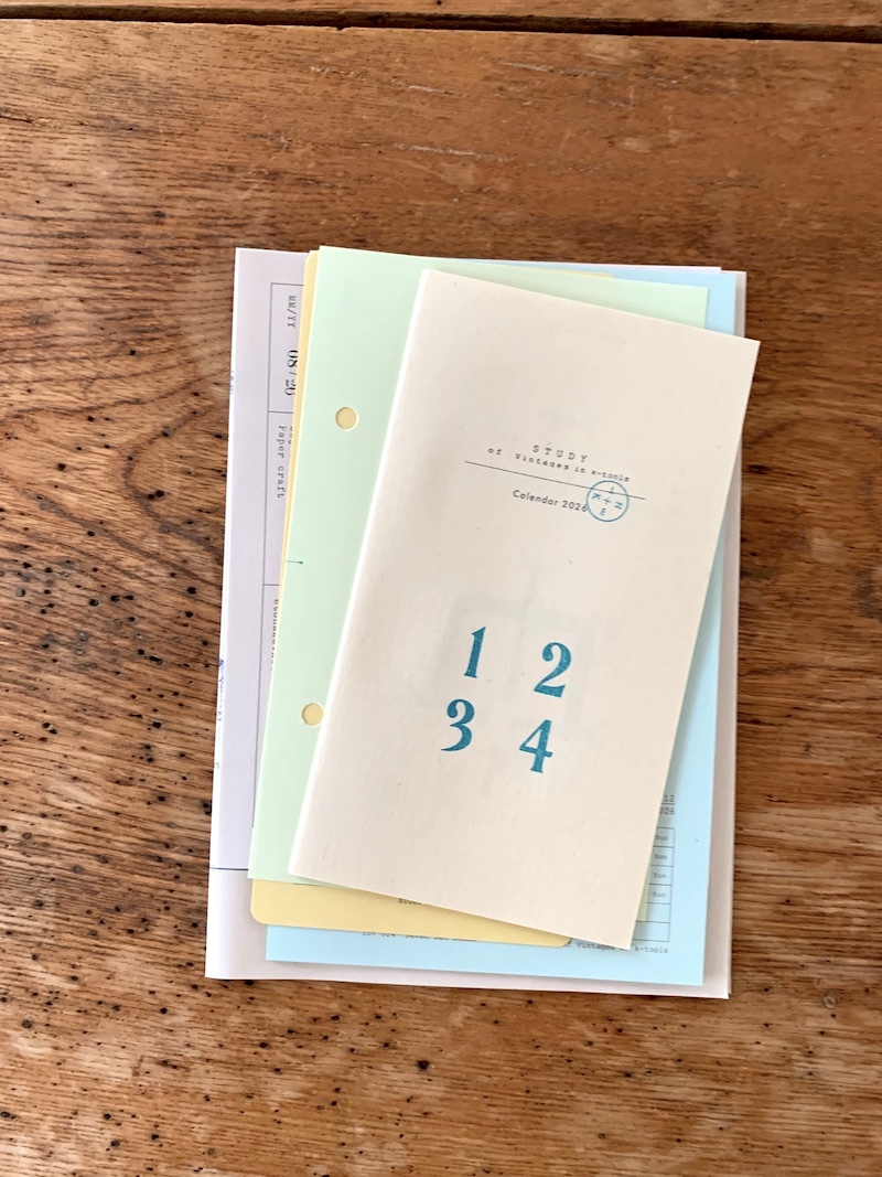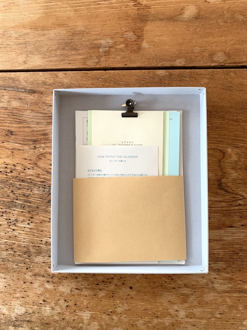 麻子さんが選んだ大小・色も形も様々な紙に描かれる、咲子さんの絵はどの月も本当に素敵。2026年度は伊賀にある古道具店「k-tools」さんに並ぶ古道具達が描かれています。あ~私もこんな絵が描けたらな。