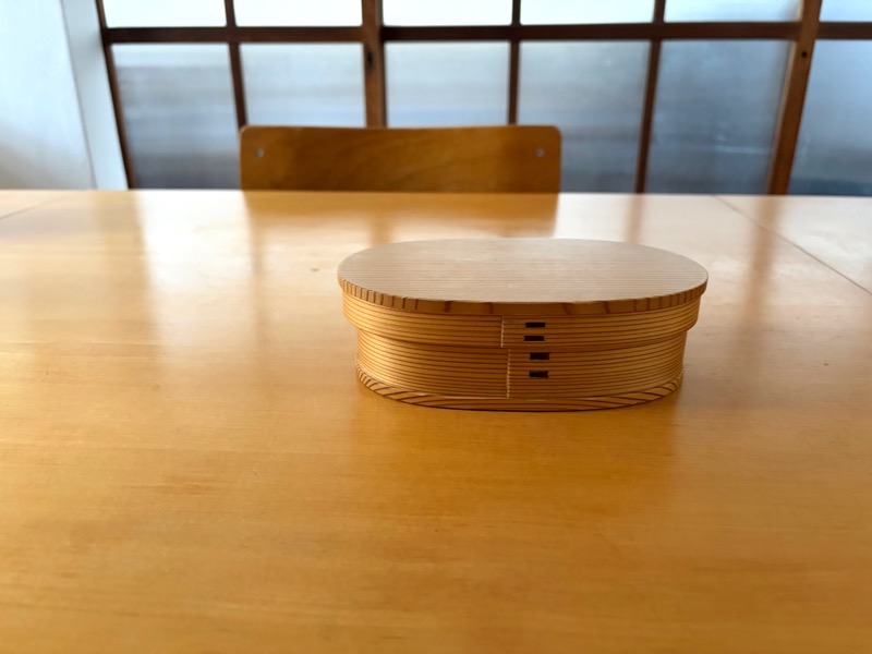 大館工芸社の曲げわっぱは、細々と長年お取り扱いをさせていただいています。私が使っているのは小判タイプの小。このお弁当箱、すごく良いです。