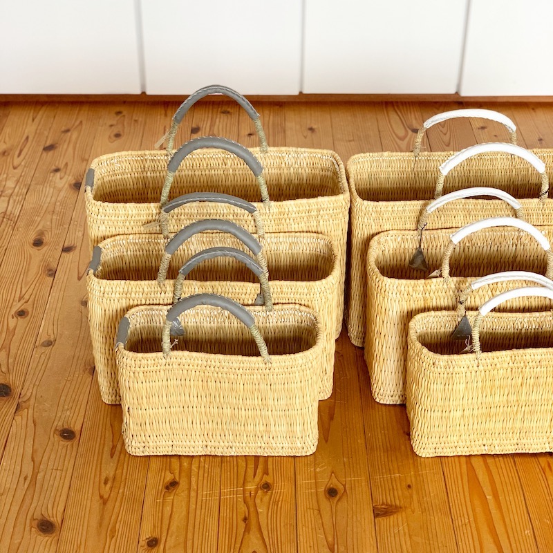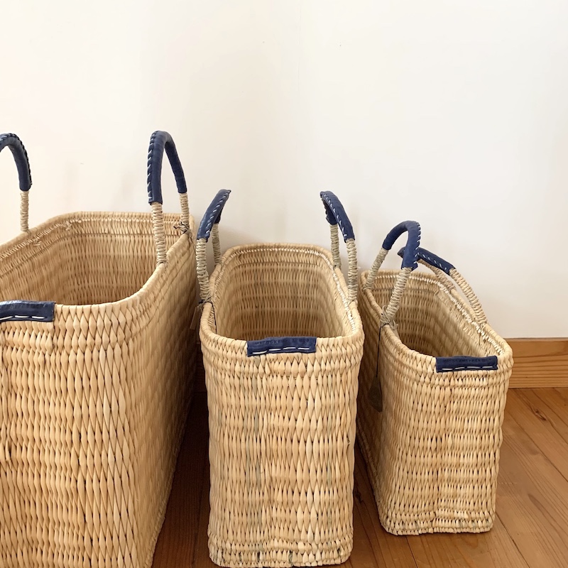 小さいサイズのものは、もちろんお出かけ用に。小さくても優秀です。財布にスマホ、エコバッグにメガネ。読みかけの本なんかも十分収まる絶妙なサイズ感です。大き目のサイズのものは家の中のあちこちで大活躍。リビングで、雑誌や新聞、ブランケットを入れて置いておいても絵になるし、洗濯物コーナーで、ハンガーや洗濯ばさみなどのごちゃごちゃしがちなものをガサッと収いれておくのにも便利。視界すっきりで快適です。1番大きいサイズはノートパソコンもすっぽり入るのも魅力。パソコンや書類を持ち歩いてお仕事される方にもお勧めですよ。