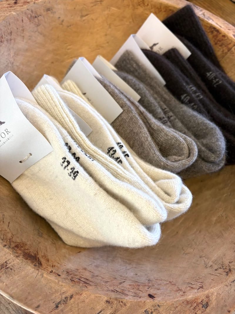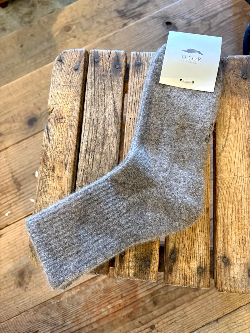 吸湿性・防湿性にも優れ、この靴下を履くと「冬が来たなー」と実感します。お店で販売しているお洋服にも靴下をヒトサジプラスするとコーディネートもアップ。ウール素材はもちろん、ヤク素材はもう一段上をいく肌触りと暖かさ。