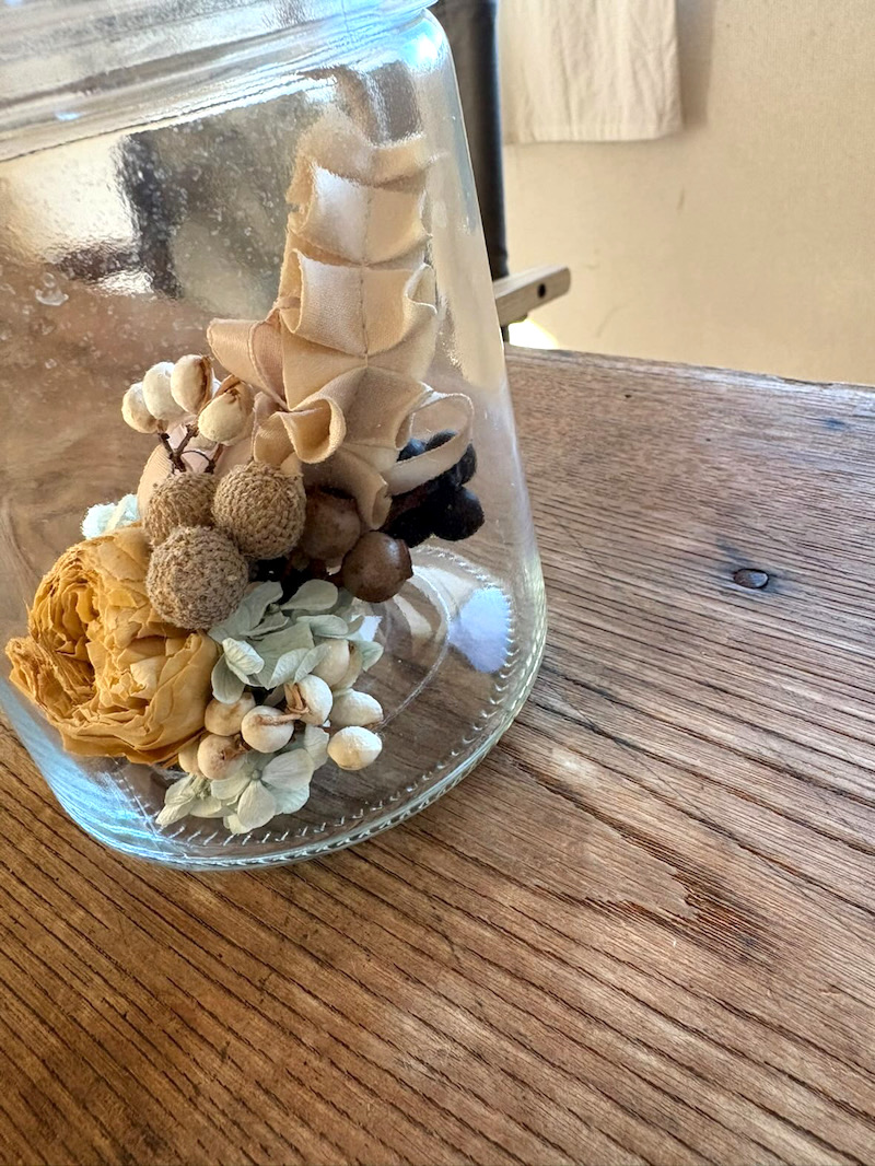 kakaさんが作り出すリースは色鮮やかというよりシックで大人っぽく空間に溶け込む。でもしっかり自重する不思議なモノ。
