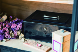 どっしりとした金庫は、お父さんが大切にしていたものだそう。