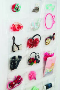 お出かけ用のヘアゴムはビニールポケットに分けて管理。