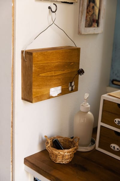 「キャンドゥ」の木箱をリメイクして、マスクケースに。