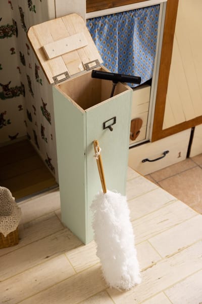 自転車の空気入れとハンディモップ用には、専用の細長い収納ボックスを主人に頼んで作ってもらいました。
