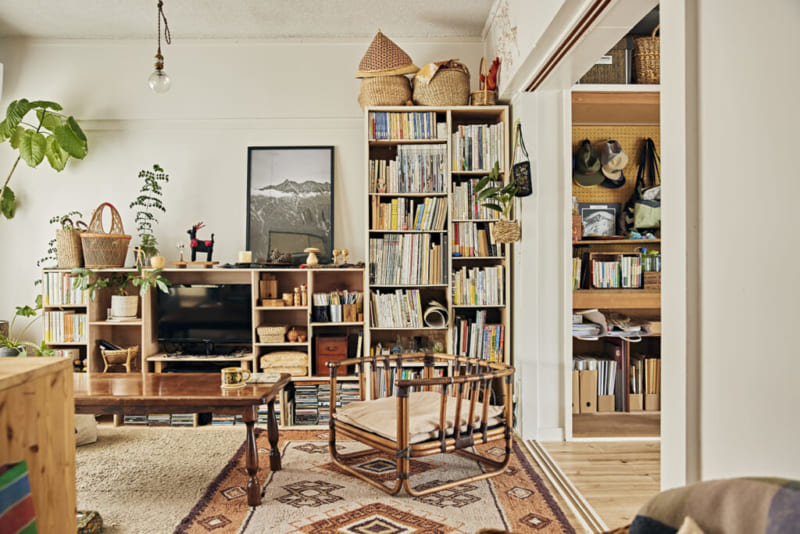 仕事を終えて帰った私を出迎えてくれるのは、旅先で見つけた民芸品、河原で拾った小石、本屋さんで出会った素敵な本、誰かの愛用品だった古いもの......。 巡り巡ってわが家にやってきたものは想像をかき立てるものばかり。道の駅で見つけたおばあちゃんの手編みの靴下は、〝ひと目ひと目、どんな思いで編んだのかな〟とジーンとなるし、古道具に刻まれたキズから感じられるのは前オーナーの息づかい。山登りで見つけた松ぼっくりだって、〝これまで山でたくましく育っていたんだな〟なんて思えてきて。一つひとつに私 のもとにやってくるまでの物語があり、その物語の続きを私が作っている。そんなことを想像すると、ますます気持ちもあたたかくなって。そうして不思議な巡り合いで私のところにやってきたものたちが「おかえり。今日も頑張ったね」と語りかけてくれるような気がして、気持ちがリセットされます。素敵な出会いを集めたこの部屋に帰ると、出会った瞬間の気持ち、楽しかった思い出までまるごとよみがえって。嫌なことがあってもあたたかな気持ちになれるから、毎日11秒でも早く帰りたくなるんです。